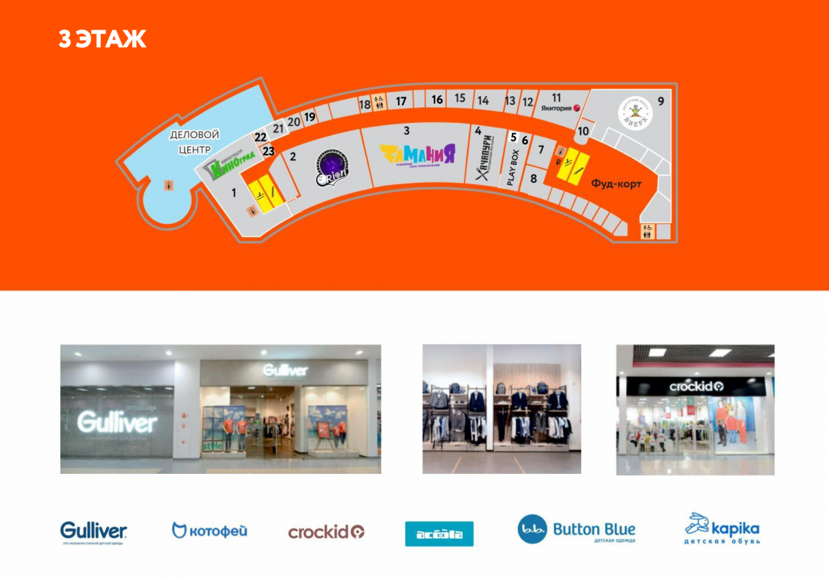 Отличное расположение - у лифта и эскалатора у фудкорта.