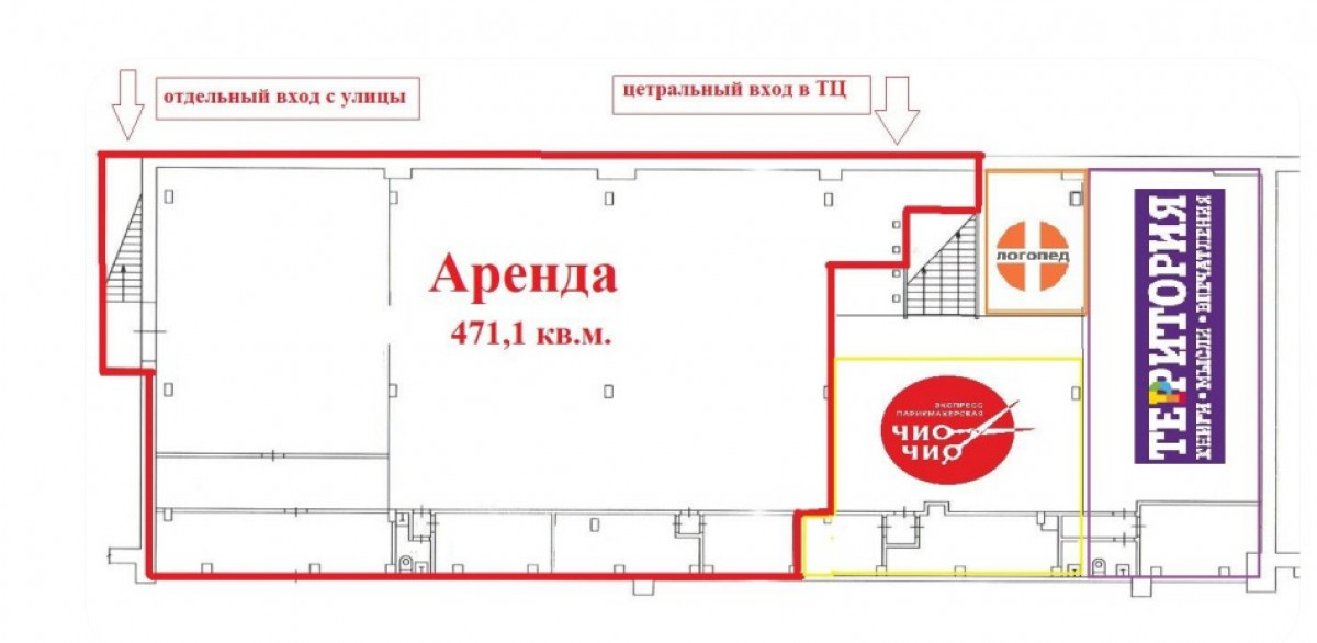 центральный через ТЦ и отдельный с улицы. Потолки 3 м.